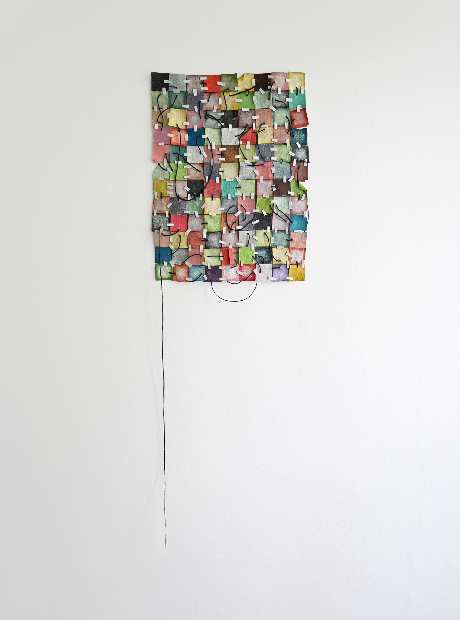 Acrylic paint on canvas, acrylic paint on string, 37” x 11”, 2021