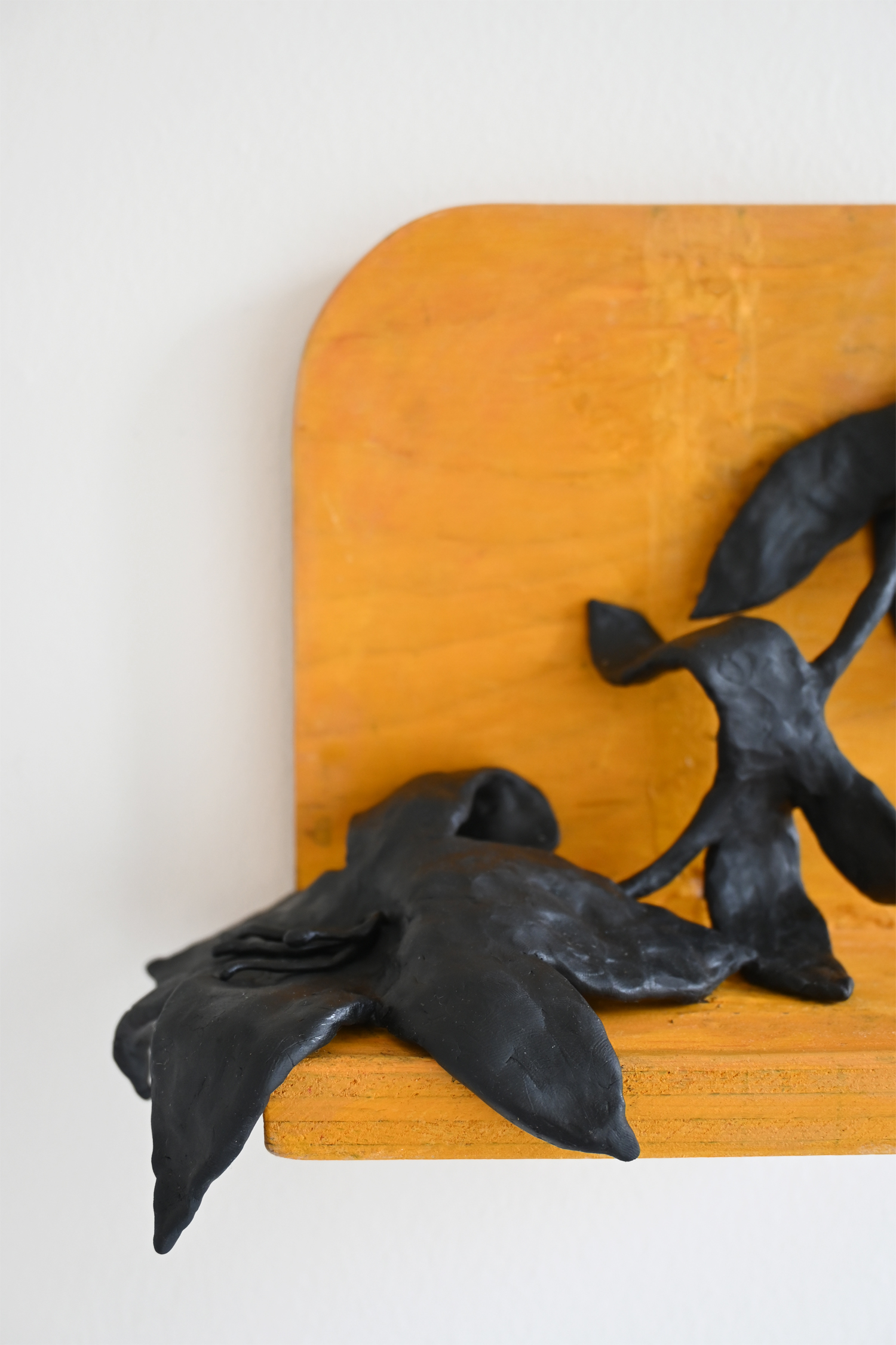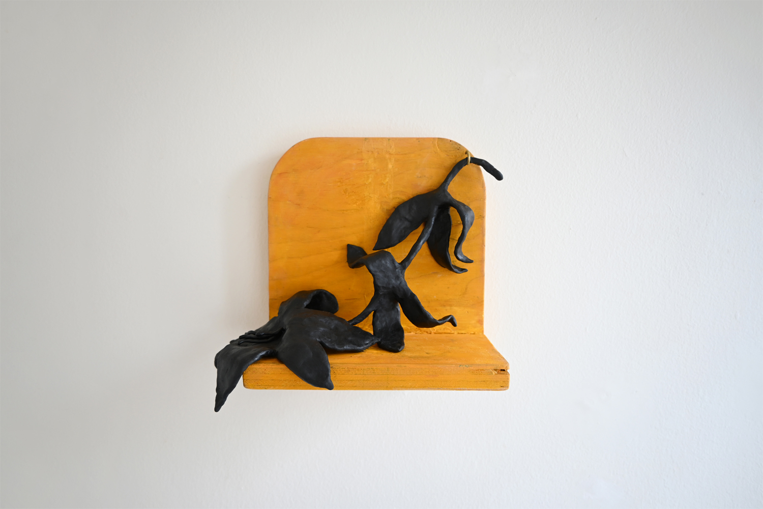 Modeling clay, oil paint on wood, 9” x 8” x 5”, 2021