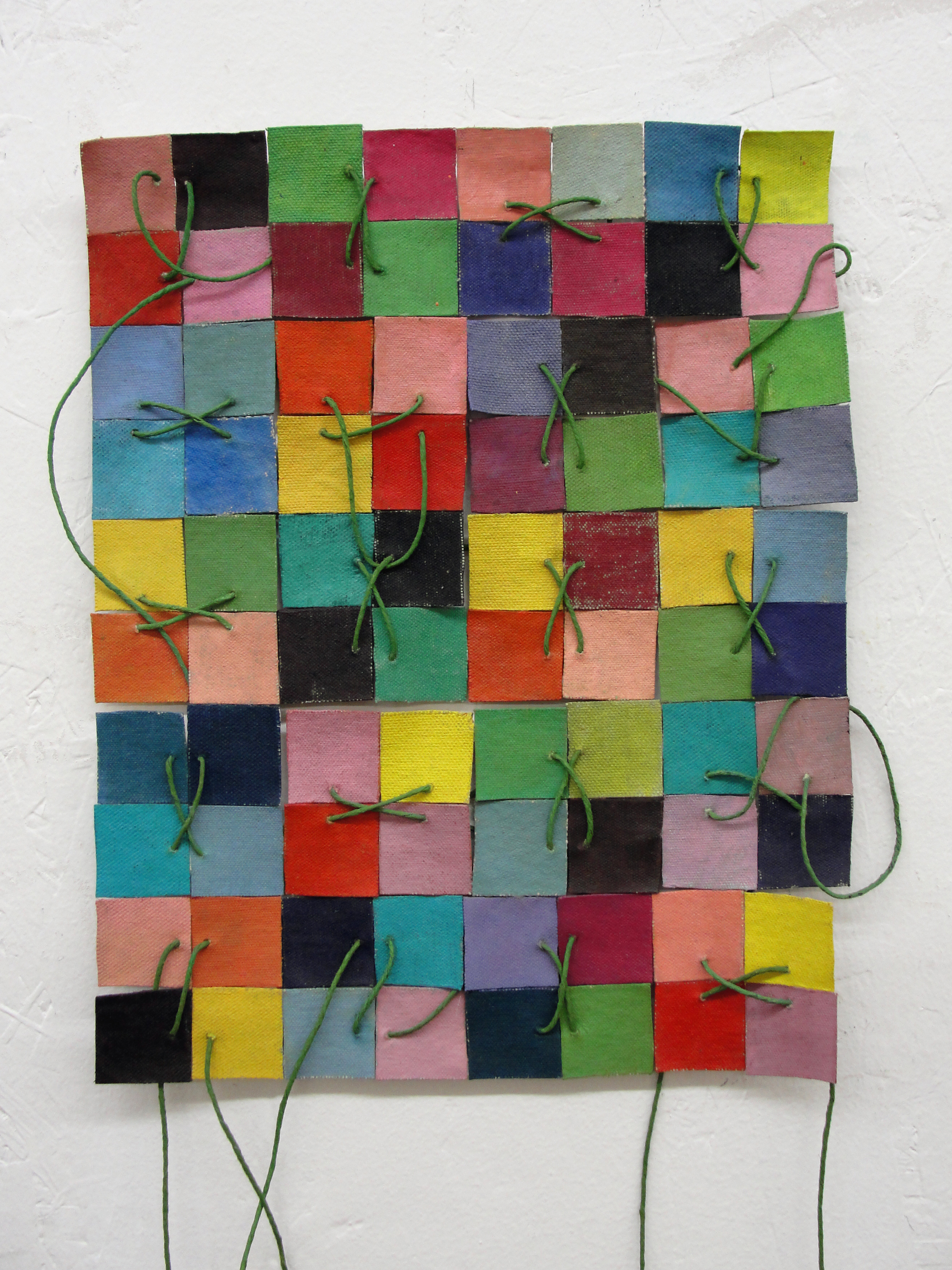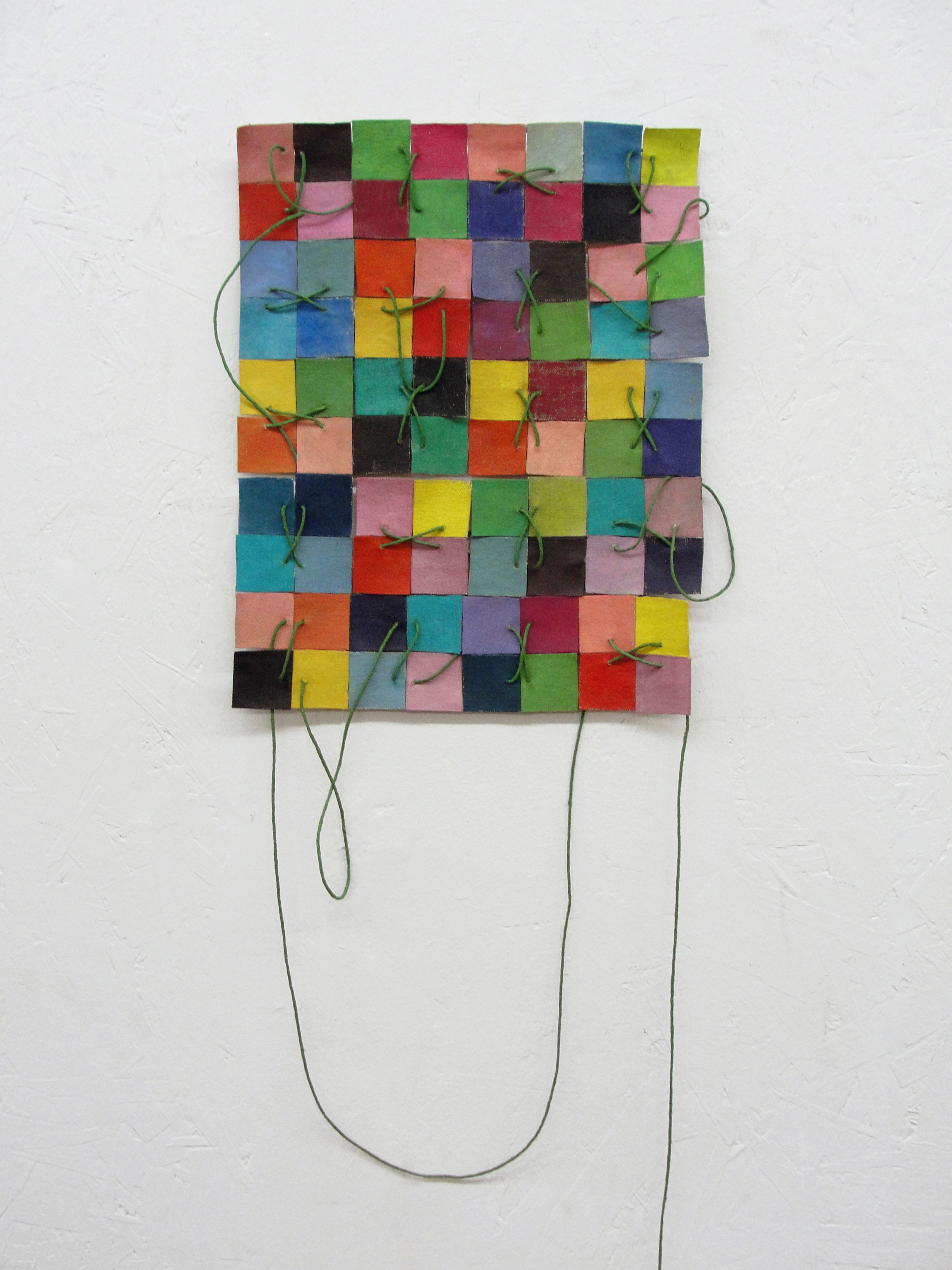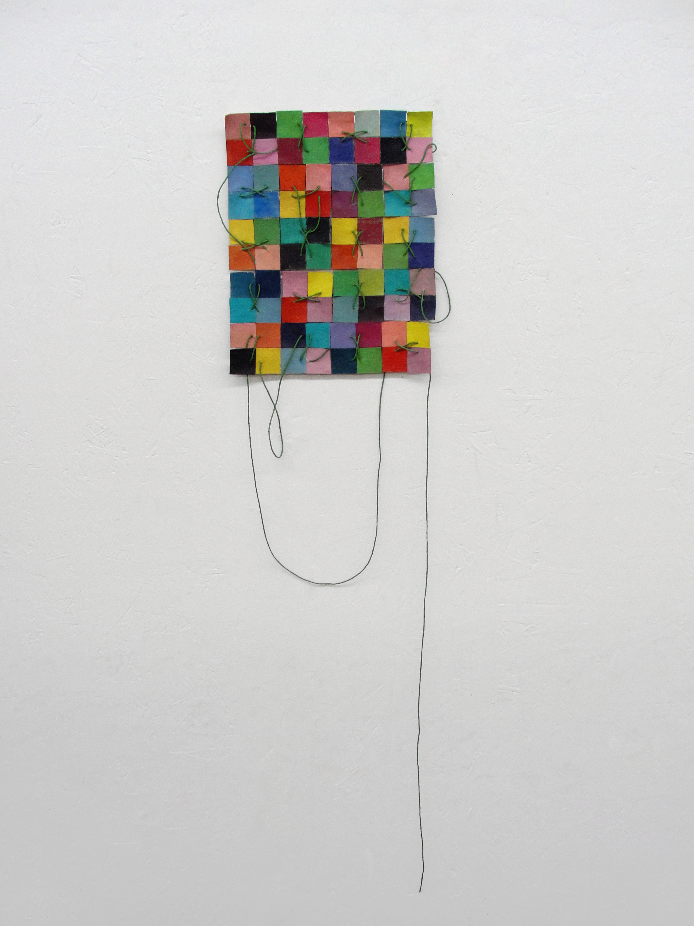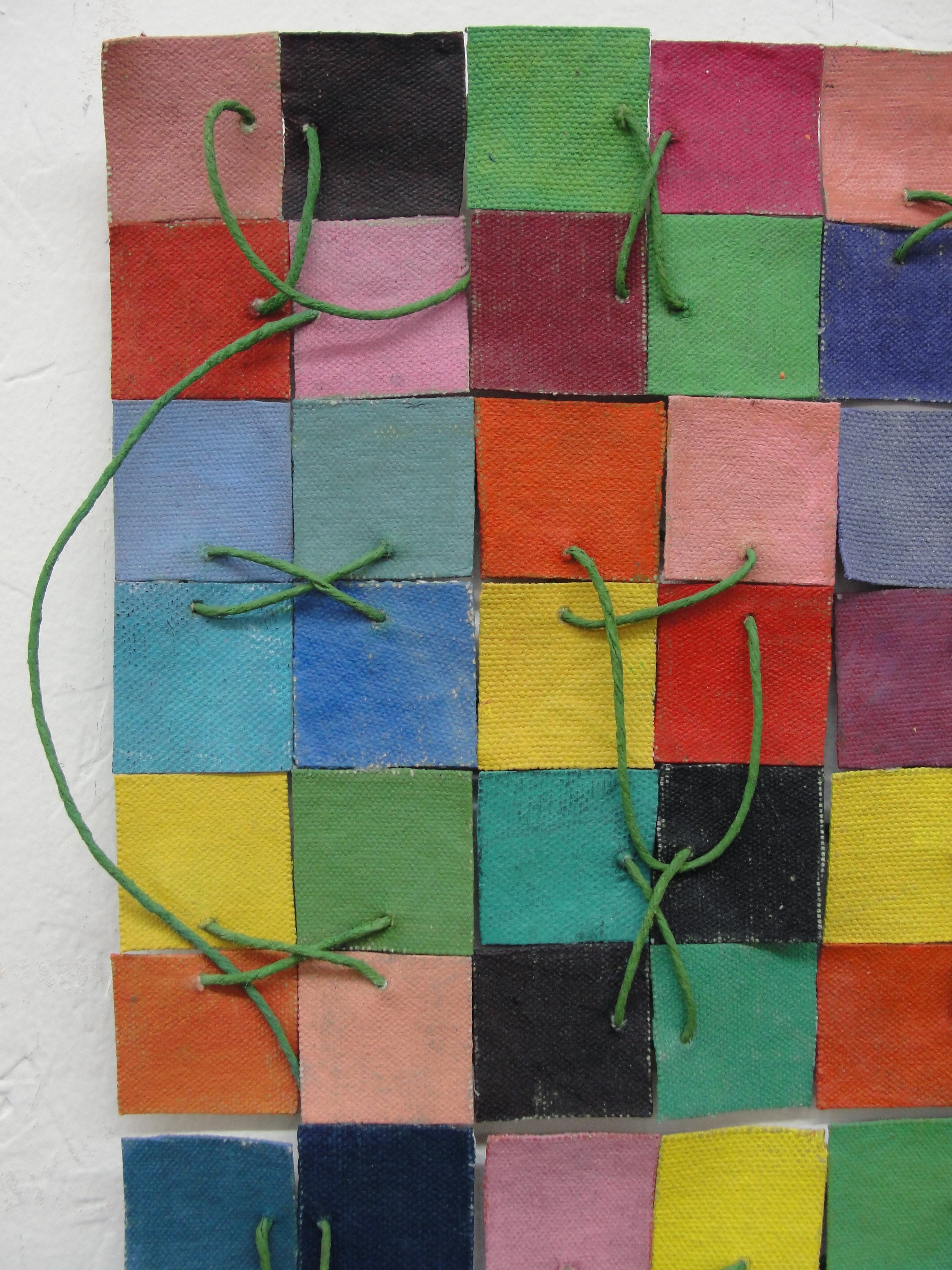 Acrylic paint on canvas and string, 42”x10”. 2021